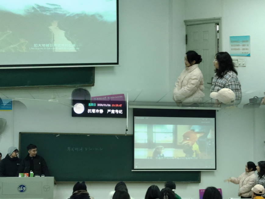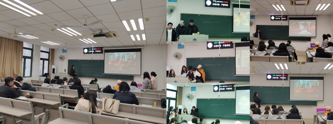 本次配音表演以小组为单位开展,全班分为5个小组,各小组精心挑选了经典影视片段或动画作品,用各自熟悉的方言进行创意演绎。从爽朗的湖北襄阳话、婉转的湖南湘西话,到厚重的陕西话、质朴的兰州话,再到独具风情的新疆和西藏少数民族语言,不同地域的方言特色在课堂上碰撞交融。同学们情绪饱满、表现力十足,恰到好处的地把握了角色语气与情感,将方言的独特韵味与作品的人物形象相结合,赢得了现场师生的阵阵掌声。
