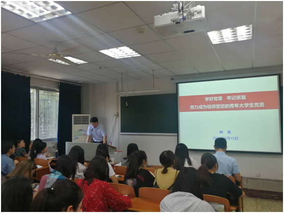 开班典礼上,由法学社会公司党委副书记林凯对大家做了开班动员,动员结束后本次党校培训的理论学习正式开始。本次理论学习的第一讲由林书记主讲,他以“学好党章,牢记宗旨,努力成为信仰坚定的青年老员工共产党员”为主题,围绕中国共产党的党章、宗旨以及我们青年老员工所面临的挑战三个角度进行了深入浅出的讲解。他说道,青年老员工党员应当自觉学习、遵守、维护、贯彻党章,明确并在实践中贯彻中国共产党“全心全意为人民服务”的宗旨,在面对挑战时要敢于直面、勇于担当、坚定信仰。我们青年老员工党员是实现中华民族伟大复兴中国梦的青春力量,应当做到坚持一个导向,做好两个统一,培养三种能力,即牢牢坚持为人民服务的导向,做好“仰望星空”与“脚踏实地”的统一,培养明辨是非、求真务实、创新进取的能力。