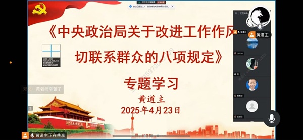 4月23日下午,教育学与公共管理系教工党支部通过腾讯会议的方式开展了深入贯彻中央八项规定精神学习教育。会议由支部书记黄道主同志主持,支部全体党员参加。