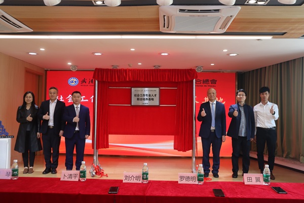 On March 25th, Professor Liu Jieming, Dean of Wuhan University of Technology (WHUT), joined União Geral das Associações dos Moradores de Macau(UGAMM) Vice President Law Tak Ming and other representatives to jointly inaugurate the "Guangdong-Macao In-Depth Cooperation Zone in Hengqin Joint Training Base for Social Work Professionals". Established by WHUT and União Geral das Associações dos Moradores de Macau(UGAMM), the base aims to explore innovative models for cultivating social work talent in the Guangdong-Hong Kong-Macao Greater Bay Area and promote the deep integration of livelihood services between Hengqin and Macao. Participants included Professor Liu Jieming, Associate Dean Bu Qingping, Professor Qin Qin (Head of Sociology Discipline), União Geral das Associações dos Moradores de Macau(UGAMM) Vice President Law Tak Ming, União Geral das Associações dos Moradores de Macau(UGAMM) Guangdong Office Director Tian Yi, and União Geral das Associações dos Moradores de Macau(UGAMM) Guangdong Office Deputy Director Liu Zhifeng.