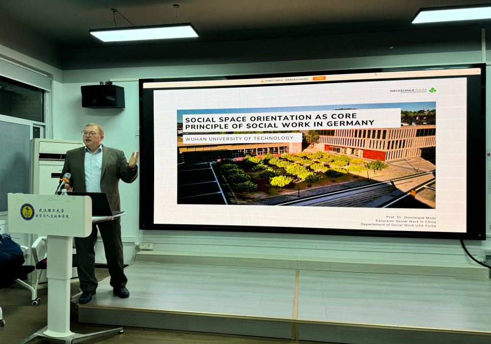 On the evening of October 19, 2025, Professor Dominique Moisl from the Department of Social Work at Fulda University of Applied Sciences, Germany, delivered a special lecture titled "Social Space Orientation: The Core Principle of Social Work in Germany" in Classrooms 913-915, Annex to Hongyi Building, East Campus. The lecture was translated by Associate Professor Liu Weihua from the Department of Sociology of our college, and was attended by 16 students from Fulda University of Applied Sciences, Germany, as well as more than 100 postgraduates and undergraduates majoring in Social Work from our college. Professor Dominique Moisl's research interests include social economy, social management, social research methods and evaluation.