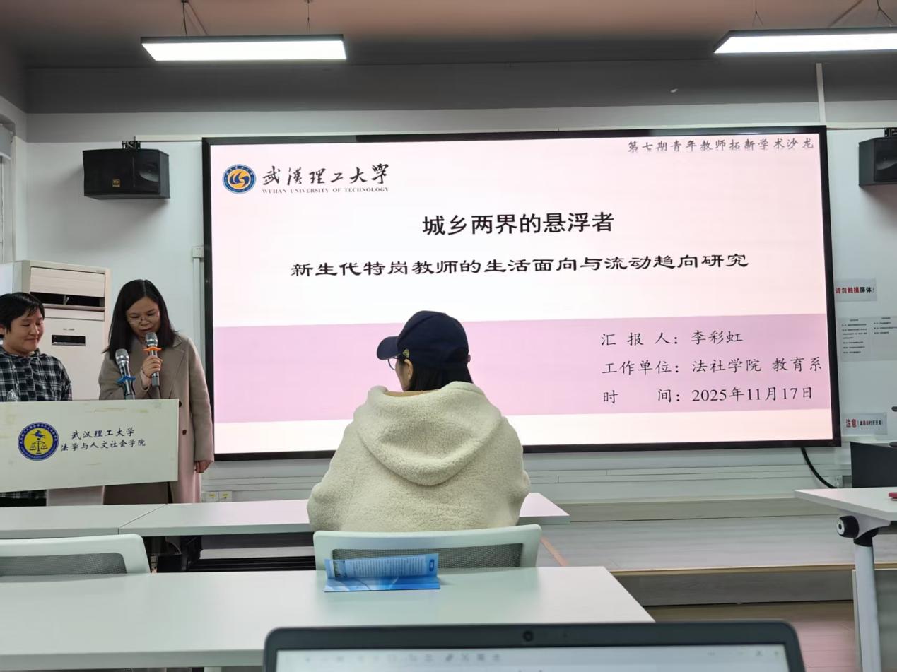 11月17日下午,公司青年教师拓新学术沙龙第七期在弘毅楼附楼915报告厅举行,教育系李彩虹博士作题为《城乡两界的悬浮者:新生代特岗教师的生活面向与流动趋向研究》的报告。本次活动由教育学系主任周群英主持,公共管理学系主任贾勇宏、青年教师周婕妤担任评议人,公司共50余名师生参加。
