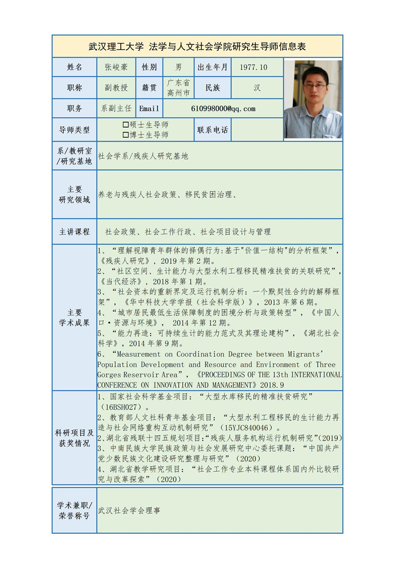 张峻豪 副教授 简介