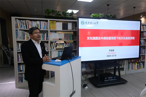 李金发书记以“文化强国及中美较量背景下的文化底层逻辑”为题,为同学们讲授了专题党课。他结合党的二十届四中全会精神,深入分析了文化强国建设的必要性、必然性,介绍了文化强国建设的主要目标与重要路径。结合当前复杂的国际形势,围绕“中美博弈”的时政热点,从治国理政指导思想、选举制度、文化根源等视角,全面分析了中西方较量背后的底层逻辑与文化差异,帮助同学们深层次理解了当前的国际局势,进一步坚定了文化自信。他号召同学们:“文化自信是一个国家、一个民族发展中最基本、最深沉、最持久的力量。大家要用实际行动为文化强国建设贡献青春力量!”