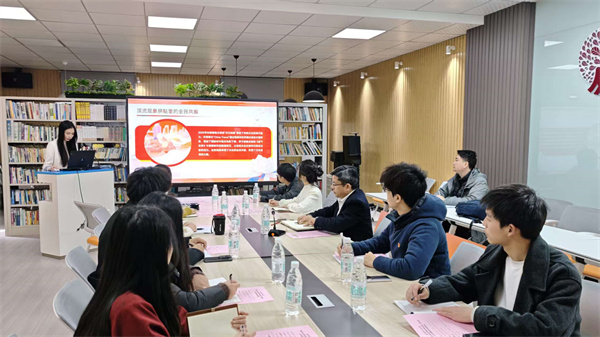 支部书记吴怡璇以“在扎实推进文化强国建设中挺膺担当”为题,作了专题领学,带领大家深入学习了文化强国建设的战略意义,号召大家结合人文社科专业特点,在传承中华优秀传统文化、推动文化创新中主动作为,以实际行动践行新时代青年的使命担当。