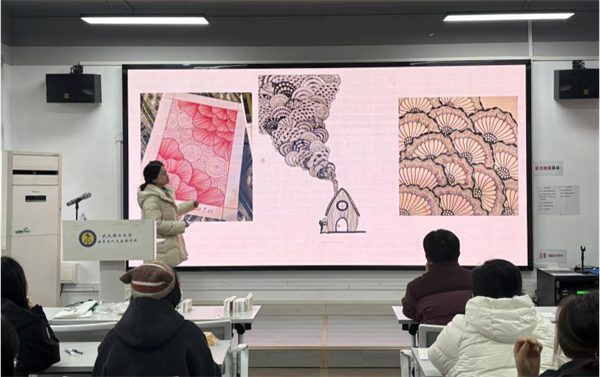 活动伊始,林昕老师简要介绍了禅绕画的来源、核心特征及创作理念,通过作品展示,传递“禅绕无需基础 重在放松专注”的核心思想,消除同学们的创作顾虑。