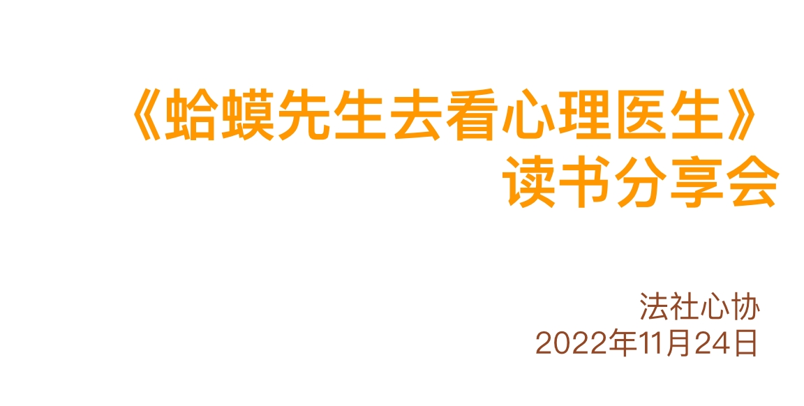 读书分享会的分享书籍为《蛤蟆先生去看心理医生》。该书以蛤蟆先生为视角,讲述了陷入抑郁的蛤蟆先生通过与心理咨询师苍鹭的互动,探索其爱炫耀、自卑性格和抑郁情绪的来源,指出童年经历会对人格产生深刻的影响,并阐释如何在心理上实现真正的自我成长,成为独立自信的人。这与“自我关怀,正向生活”的主题不谋而合,通过读书会,同学们不仅体会到心理学的魅力和力量,也在读书的过程中更好地关怀自我、认识自我、治愈自我。