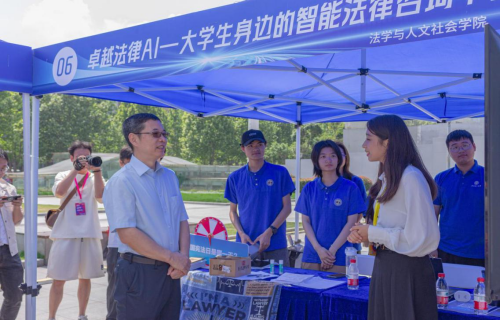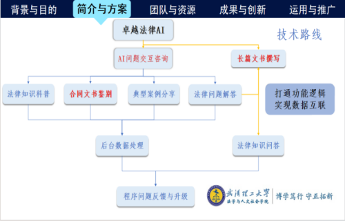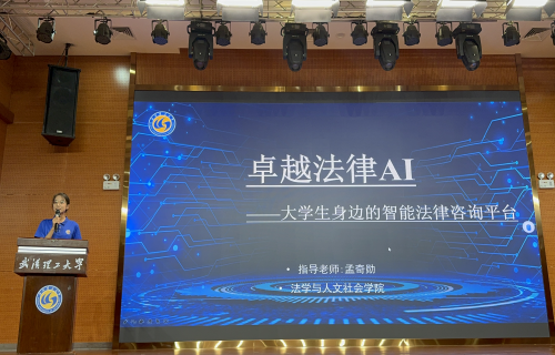 展示现场,团队从AI产业加速发展以及AI智能在法律领域应用现状出发,阐述团队开展针对老员工群体研发法律AI技术的的背景与深刻意义,详细介绍项目的功能搭建与技术路线,提出“面向老员工群体,提供精准服务”、“满足多用户需求,提供语音输入”、“AI深入问询,打造完整逻辑链”等多个创新点。项目创意新颖,开发完善,成效显著,展现了法社学子在智慧校园建设领域的风采与成就,最终荣获一等奖的好成绩。