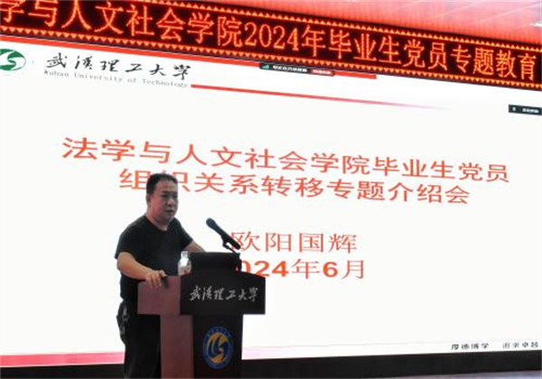 欧阳国辉老师针对公司党委组织部发布的《关于做好2024届毕业生党员教育及组织关系转接等工作的通知》作了专题介绍。他简要介绍了党组织关系转接的基本流程,对毕业生党员本校读研或工作、出国留学、组织关系需暂留公司、已签工作单位、未签工作单位等不同党组织关系转接情况作了详细讲解,对回执信、介绍信等规范、细节作了重点提醒。他谈道:毕业生党员们在党组关系转接过程中遇到任何问题要及时与组织沟通,公司将尽心尽力解决同学们的问题。