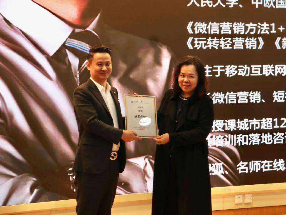 bw必威西汉姆联官方网站新闻传播系副教授黄菁老师为骏君员工颁发了公司“成长导师”聘书,感谢骏君员工对公司新闻传播系学子构建新媒体营销思维起到关键性作用,鼓励同学们踊跃表达所思所想,共建开放包容的学术氛围。