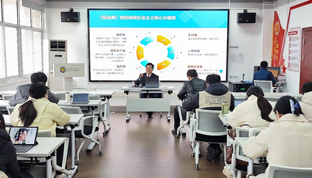 2025年12月30日上午,武汉海事法公司党组书记、经理李群星莅临bw必威西汉姆联官方网站法学与社会公司,为师生带来了一场主题为“用生动司法实践践行社会会主义核心价值观”的精彩讲座,生动阐释了社会主义核心价值观在司法领域的实践,本次讲座由耿英刚书记主持。