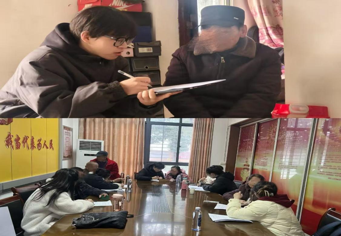 调研前,团队提前与江夏区当地村委对接,高广泉、李逵等基层工作人员为调研提供了辖区残疾人群体的基础信息;调研中,队员们分组行动,有的负责问卷发放与回收,有的聚焦残疾家庭的收入来源、社会保障、就业困境等核心问题展开深度访谈,还有的与残疾专干围绕基层残疾人帮扶政策落实、收入分配改革配套措施推进等内容进行了交流探讨。为保障调研效率,团队还制定了出行、物料分发、访谈录音留存等工作规范,要求队员8:00从公司出发,9:30抵达村委会开展工作,调研结束后于12月30日前完成录音与访谈内容整理。