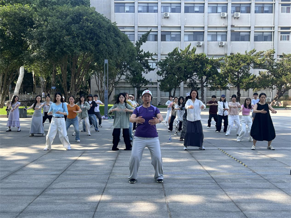 在赵老师富有感染力的口令和示范下,动感十足的音乐瞬间点燃全场。同学们跟随着节拍,整齐划一地伸展臂膀、扭动腰胯、跳跃击掌,每一个动作都充满力量与朝气。汗水浸湿了衣衫,笑容却愈发灿烂,大家在酣畅淋漓的律动中有效释放了学业压力,沉浸在集体运动的纯粹快乐里,现场不时爆发出热烈的掌声和欢呼,青春活力肆意飞扬。